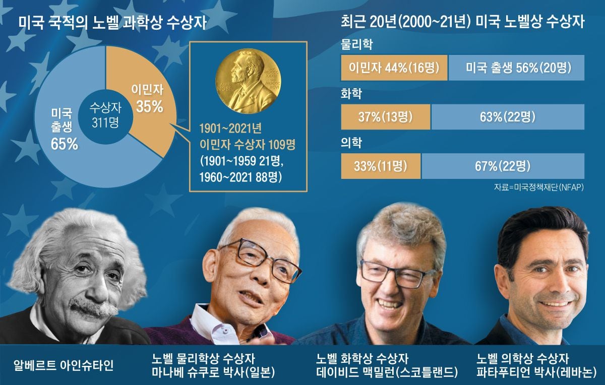 美 노벨과학상 35%는 이민자… 올해는 4명 중 3명