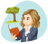 사과나무 아래 앉아 있는 아이작 뉴턴 | 무료 벡터