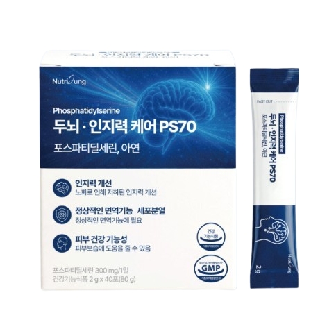 뉴트리정 두뇌 인지력 케어 PS70 포스파티딜세린 아연 2g x 40포, 1