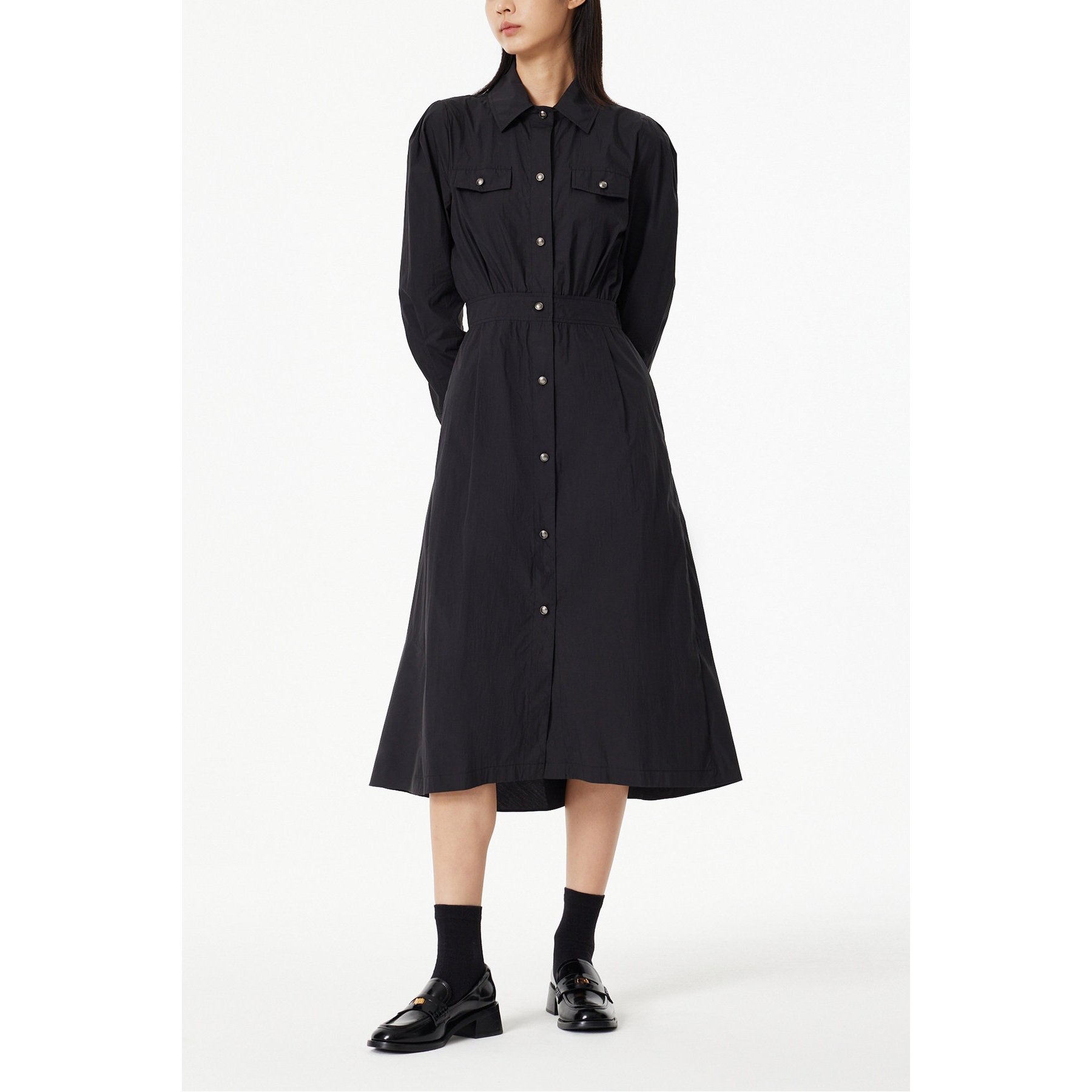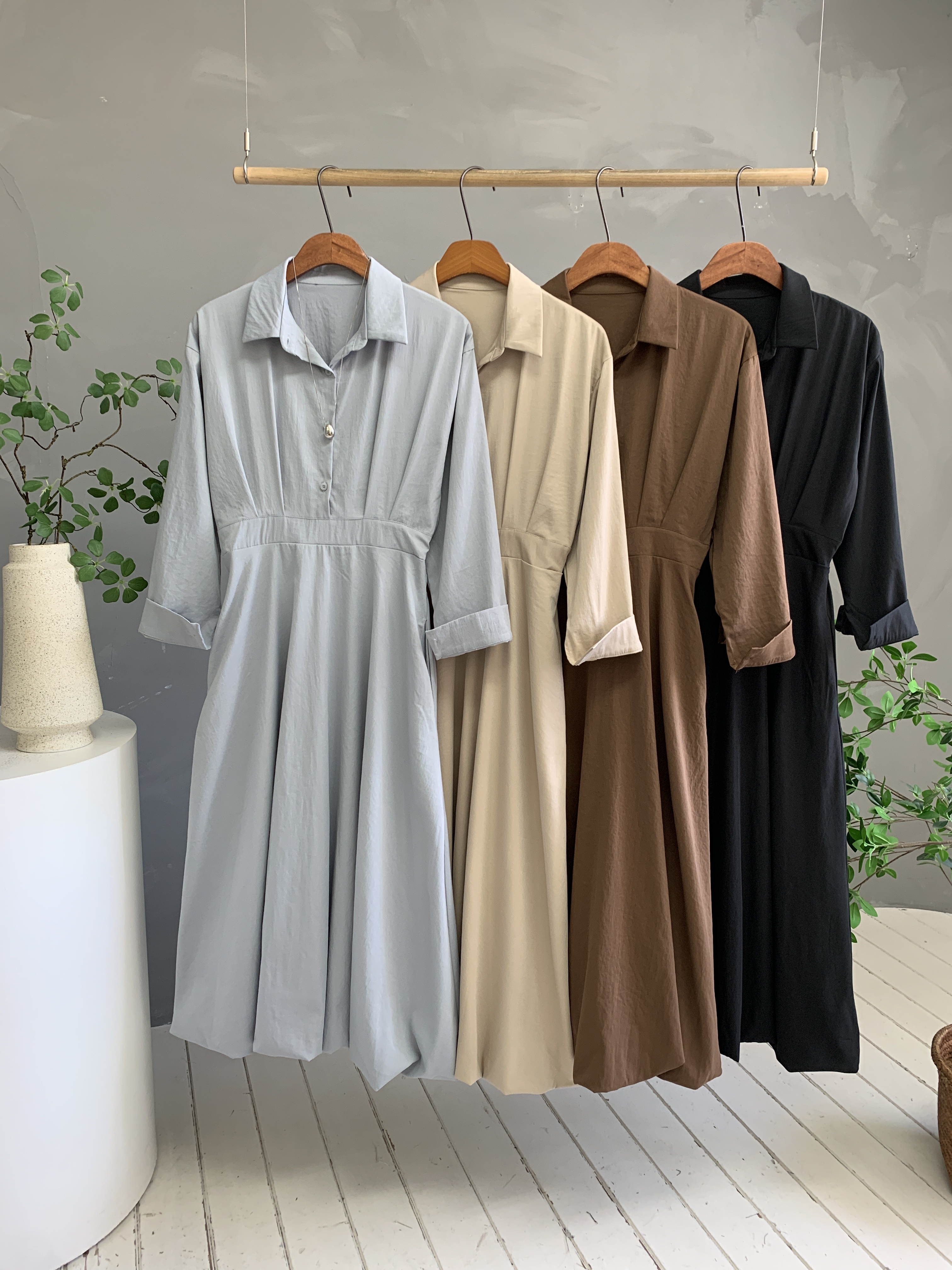 [봄] 투나니 핀턱 플레어 카라 롱원피스 A라인 셔츠 드레스