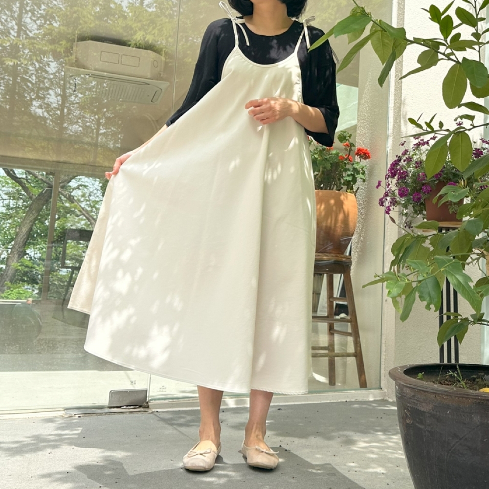 빅사이즈 자체제작 A라인 뷔스티에 롱 원피스 면 스판 끈 조절 나시 레이어드 멜빵 베스트