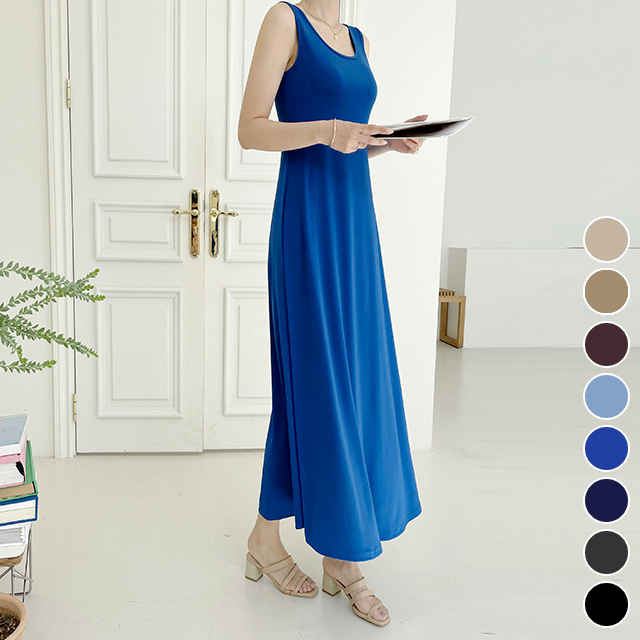 냉장고원피스 40대여름원피스 맥시원피스 민소매 나시 A라인 77 플레어 블랙롱 베이지 여성