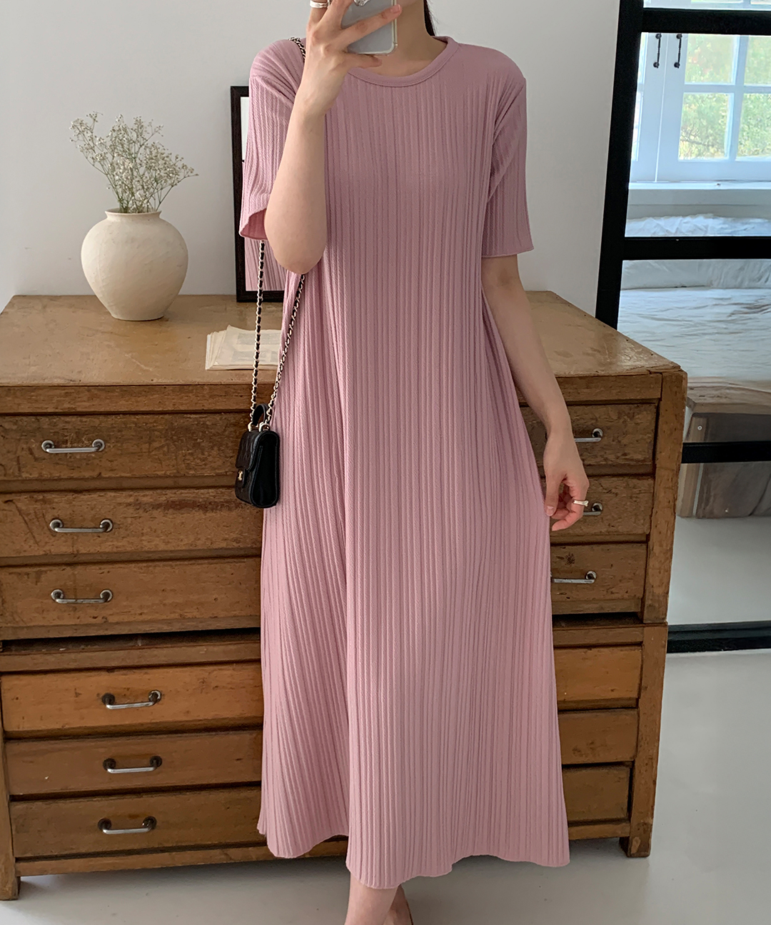 여름 원피스 빅사이즈 플리츠 반팔 A라인 롱 원피스 봄